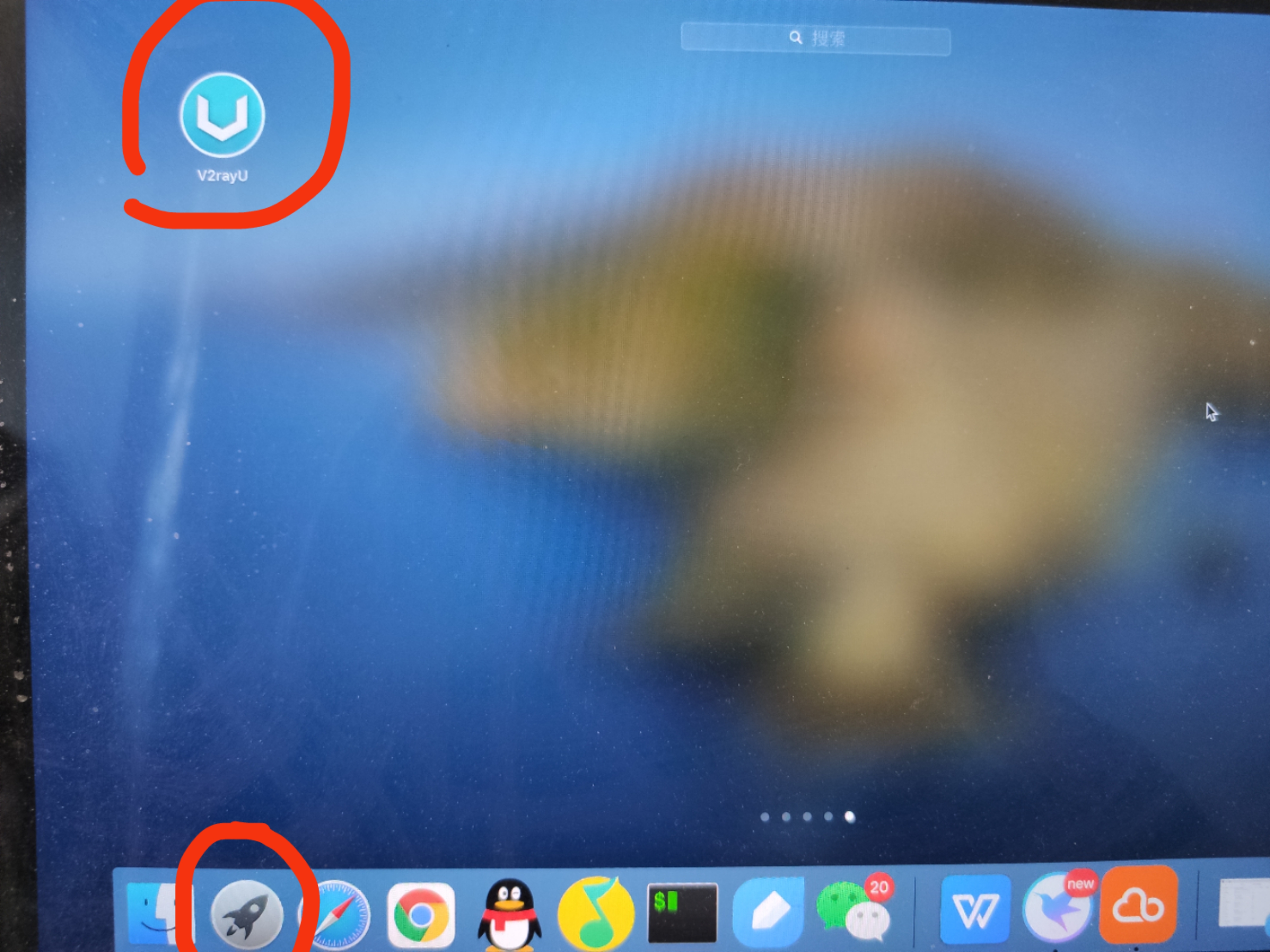 3.电脑左下角,启动台里边,打开v2rayu,如图三