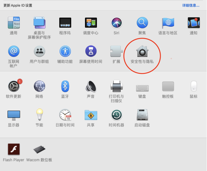 2.打开安全性与隐私,如图二