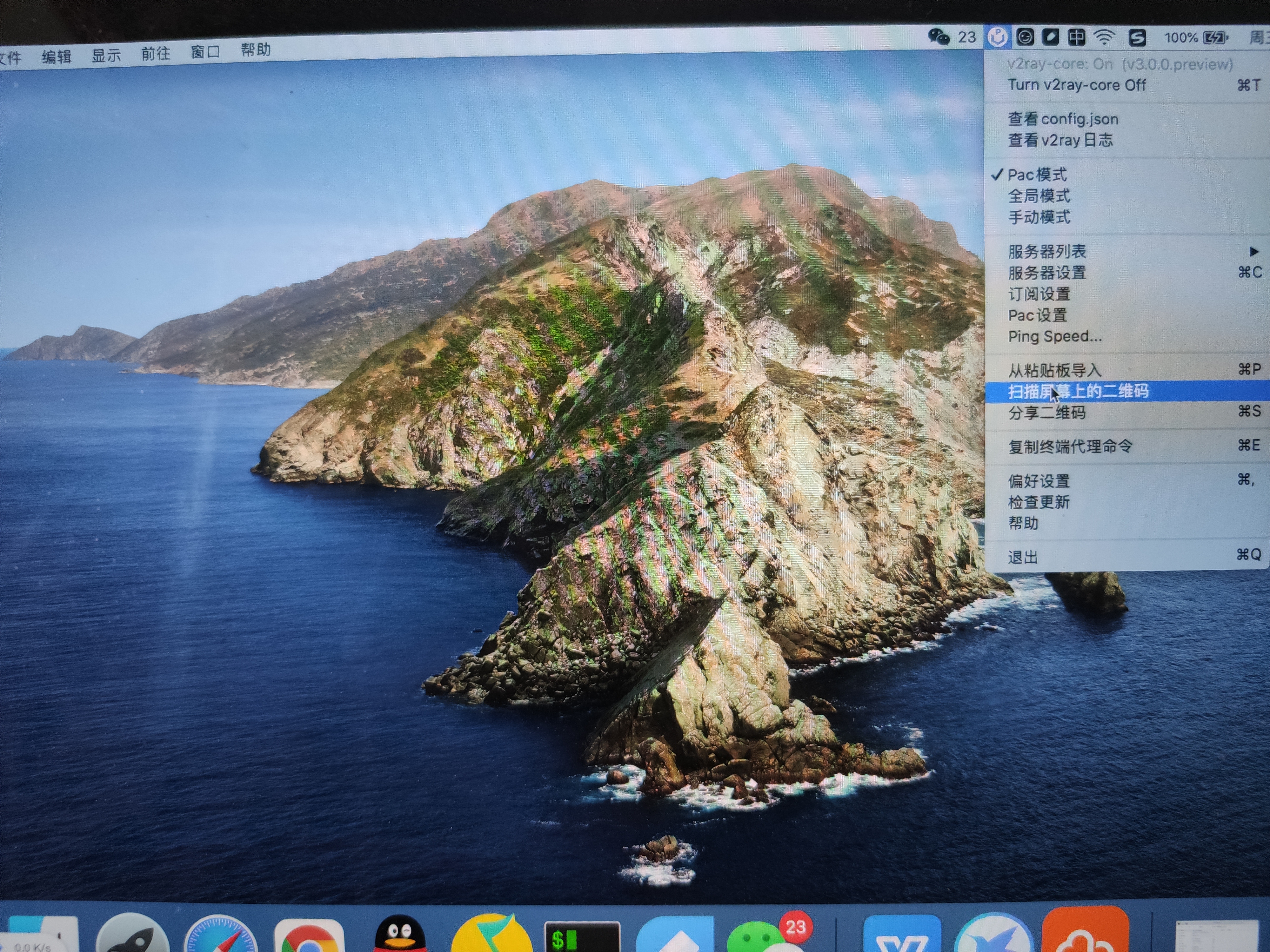 5.电脑左下角,启动台里边,打开v2rayu,如图五
